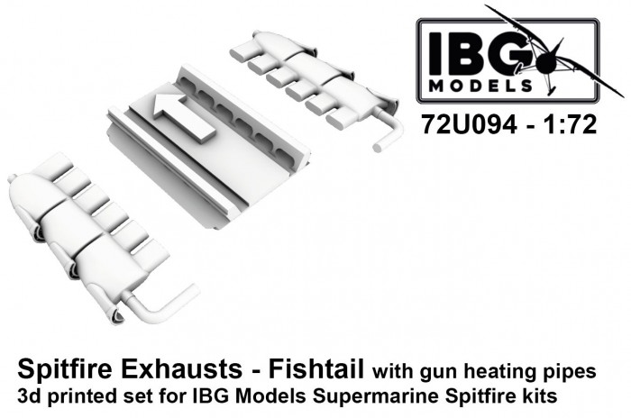 IBG 72U094 Supermarine Spitfire Exhausts - Fishtail Type with gun heating pipes - 3d Printed Set (1:72)