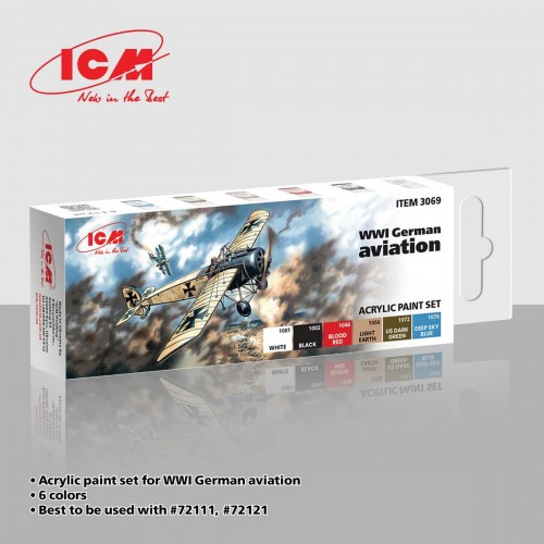 ICM 3069 Acrylic Paint Set WWI German Aviations (6 x 12 ml.)