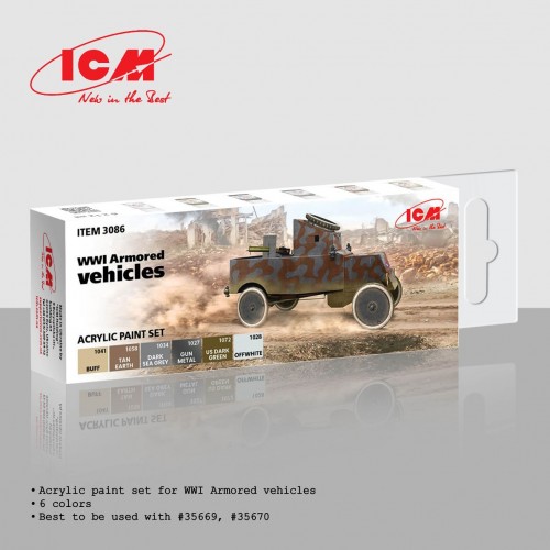 ICM 3086 Acrylic paint set WWI Armored vehicles (6 x 12 ml.)