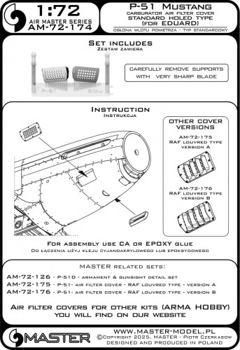 Master AM-72-174 P-51 Mustang - pokrywa wlotu powietrza do gaźnika - typ standardowy z otworami (do modelu Eduard) (1:72)